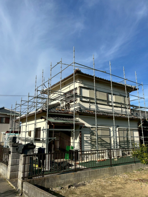 今回の泉佐野市での施工においても、作業環境や安全面に配慮しながら、仮設足場の設置を行ないました。